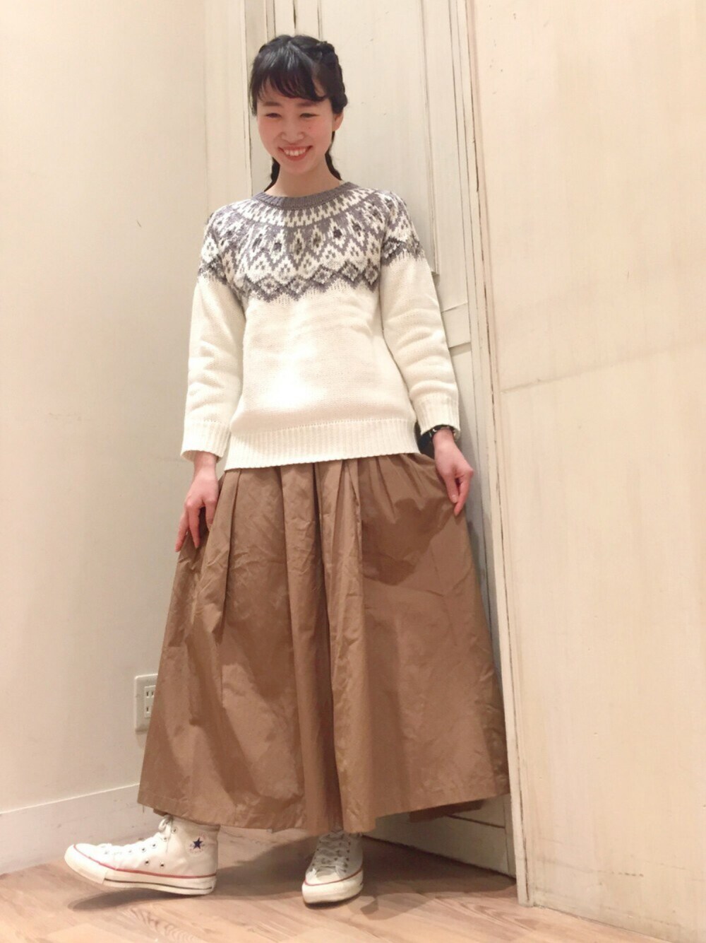こんにちは🎶 暑さが戻ってポカポカ陽気ですね〜〜 お出かけしたくなりますが、お仕事です‧⁺◟︎( ᵒ̴̶̷̥́ ·̫ ᵒ̴̶̷̣̥̀ ) 🌟 さて。昨日、アップしたアウターの下は こんな感じです(^O^)🌟 かわいいニットは一目惚れでした〜🎶 模様部分があえて立体感を出すために 毛足が長くなっていてふわふわ感倍増です! スカートはしっかり長さがあるタイプで スニーカーとの合わせも抜群でした😊💕 かわいいニットも沢山ありますので 是非、お立ち寄りくださいね☺️🌿