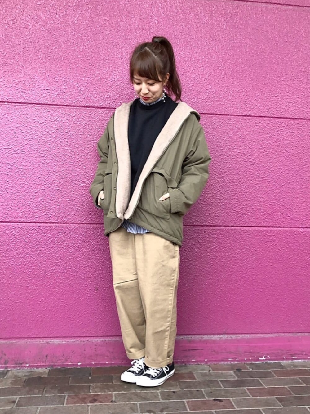 リバーシブルでお使い頂ける マウンテンパーカーはボーイッシュなコーデにも、 ワンピースなどのフェミニンなコーデにも良く合います◎
