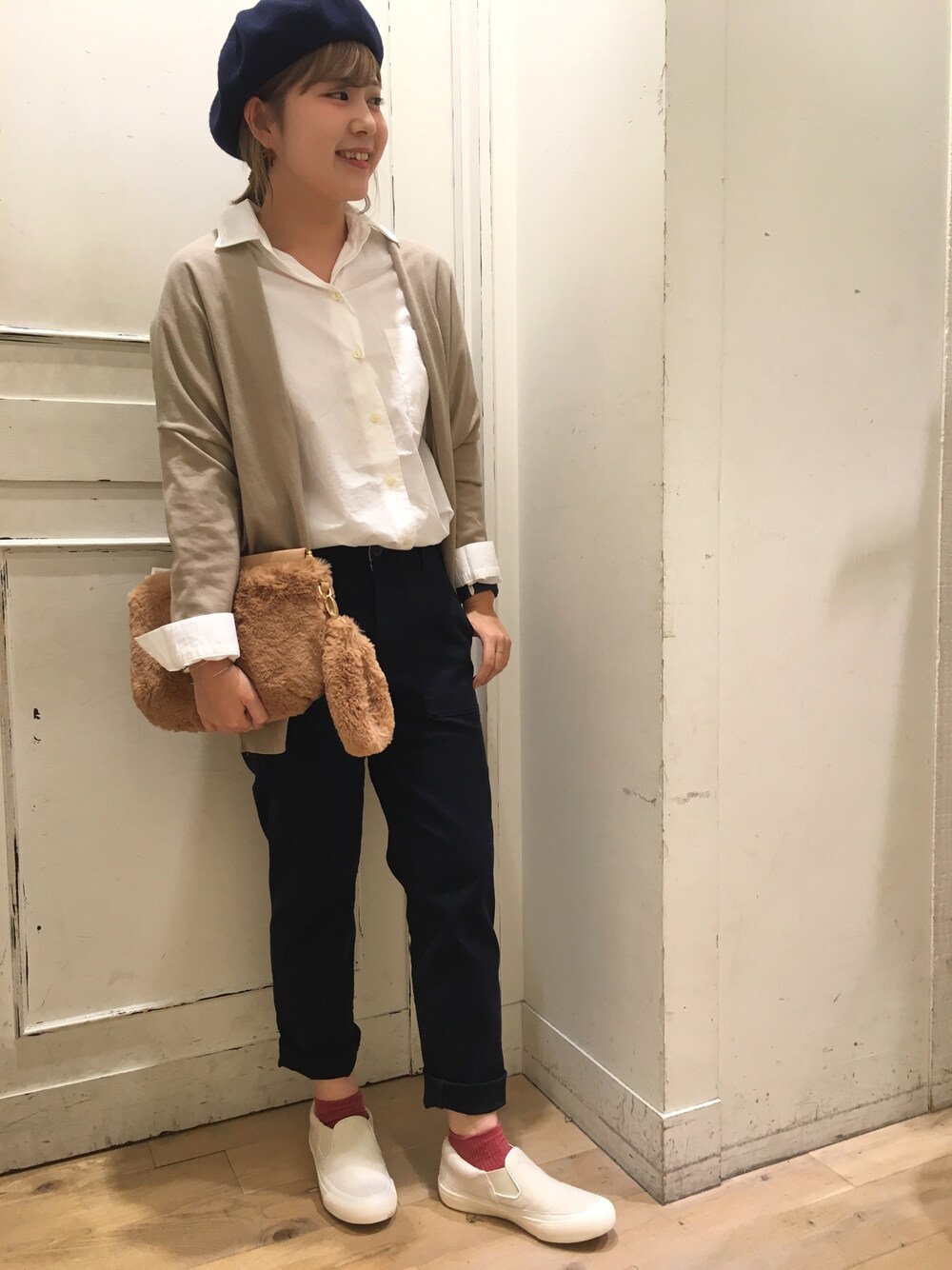 お姉さんスタイルで秋感を出しました✨ カーディガンとシャツとの組み合わせは合うものですね✨腕まくりでシャツのチラ見せがポイントですね!カーディガンもお色がお豊富でいろんなスタイルが楽しめますよ♪