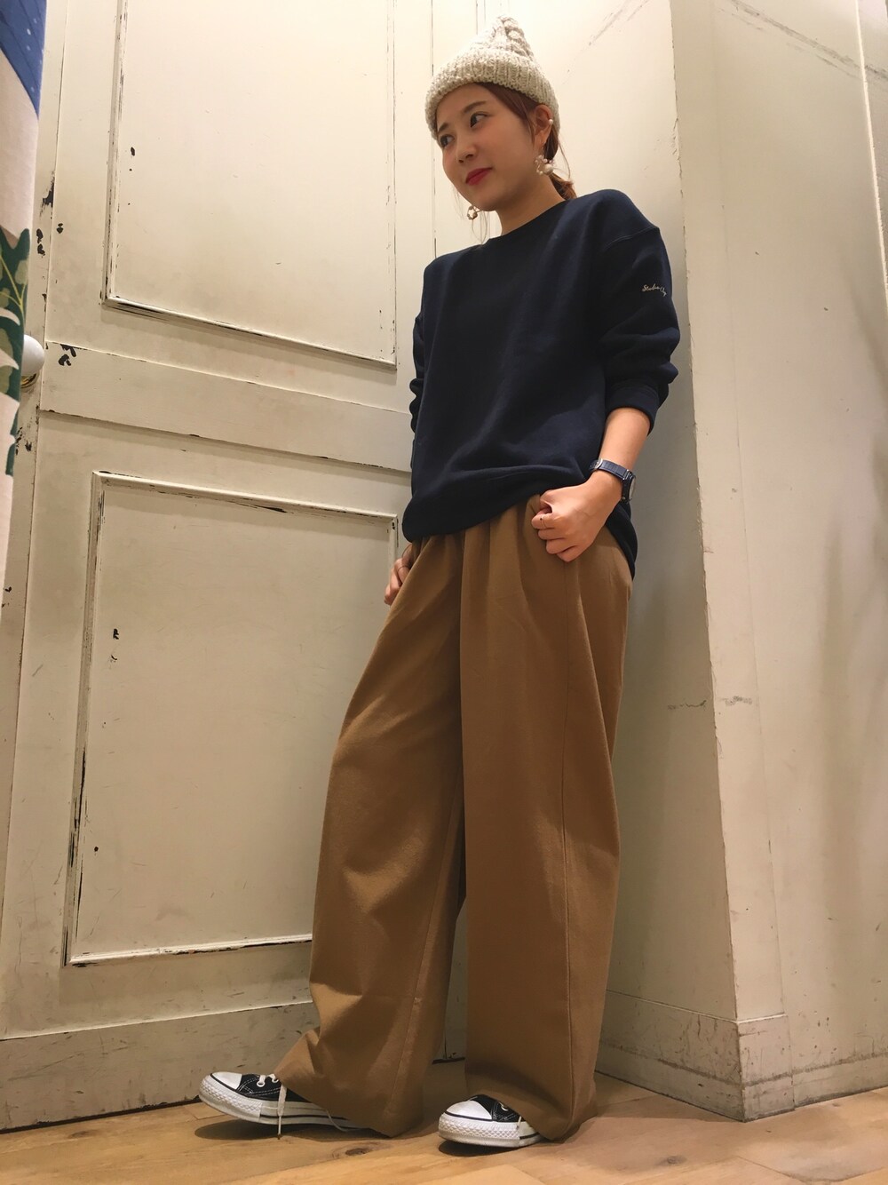 シンプルですが秋を感じるラフなスタイルです🍁上下ゆったりですがスラッと見えるワイドパンツなので合わせていただけます♪♪