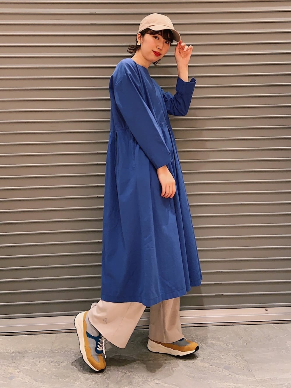 ブルーコーデ!ワンピのシルエットが可愛いのでそのまま一枚着できちゃってください!