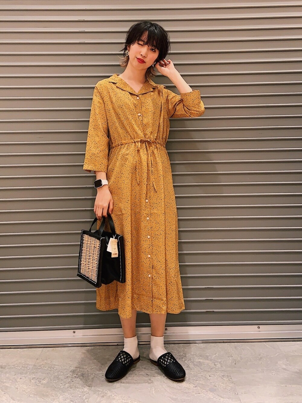 studio CLIP ジョイナステラス二俣川店のワンピース「オープンカラープリントワンピース」を使ったコーディネート