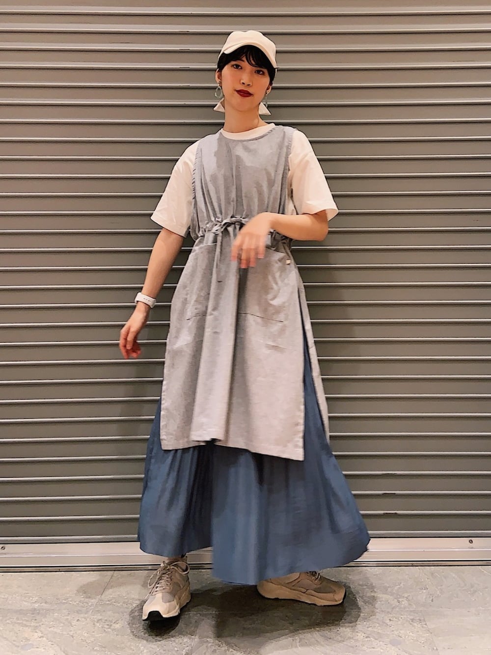 instagram→@yyy.o.kフォローしてね! わたしは令和コーデとして新しくエプロンもファッションに取り入れる時代にしたぜ!スリットがざっくり入ってるのでエプロン感がなくて良いレイヤードでございます