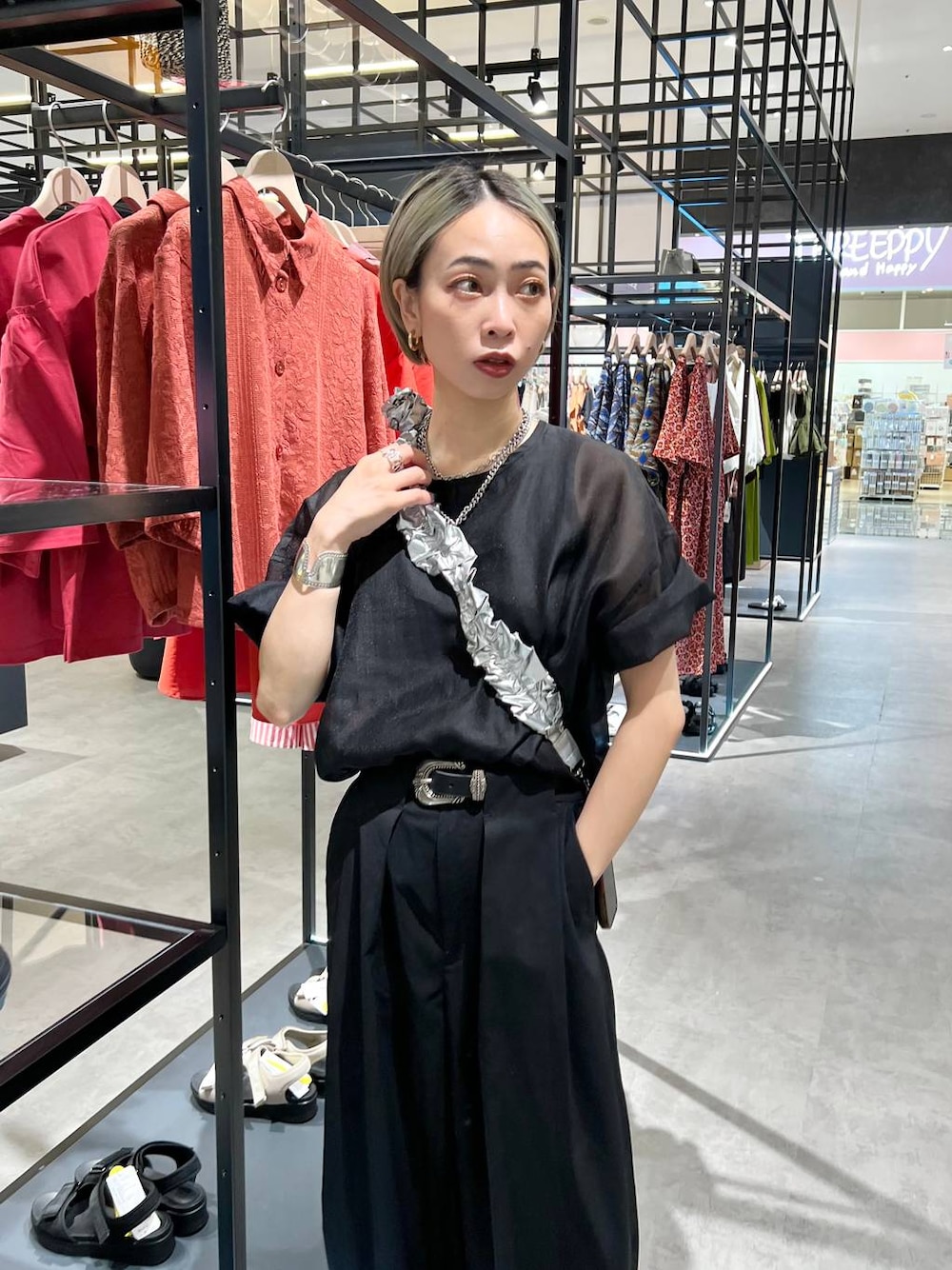 mei(PAGEBOY 本部)のタンクトップ「【bijorie】カップ付きアシメアメスリ/NEW BASIC 24SS」を使ったコーディネート