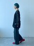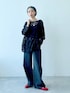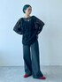 ブラックコーデでも、 トップスをレースにすれば重たくなりません◎ デニムは154cmでMサイズ着用。 丈感ぴったり!ウエストゆるめなのでベルトしてます!