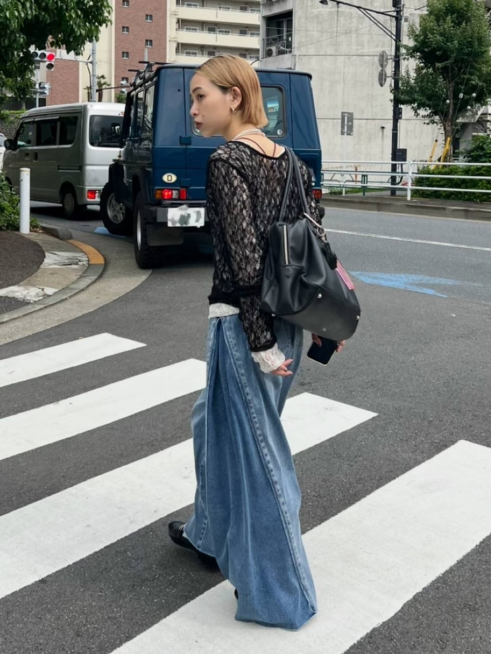 トップス▶︎シンプルで甘くなりすぎずに、着られるレーストップス!白と黒を重ねて着てます!透け感軽減されるので、透けが苦手な人にもおすすめ! パンツ▶︎フリーカットできるから低身長さんにもおすすめ!カットソー素材で夏でも快適なデニム!ウエストゴムでめっっちゃ楽!