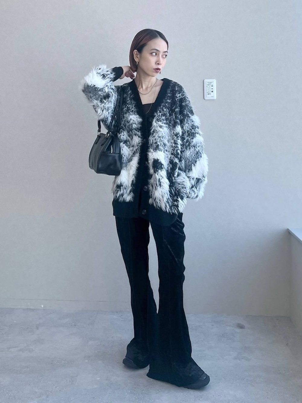 カーディガン▶︎お尻まですっぽり隠れて体型カバーにも◎インナーにキャミを着てるけど、全然チクチクしません!羽織としてもニットとしてもめっちゃ使える! パンツ▶︎丈が長いのでウエスト1つ折ってます!ウエストゴムでめっちゃ楽!フレアシルエットで美脚に見えるベロアパンツ!