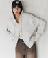 レザーブルゾン▶︎WEB限定Sサイズ!ワイドシルエットのパンツと合わせるとバランスの良い丈感◎低身長さんや、スタイルアップをしたい人は、丈短いサイズがおすすめ! インナーの裾を出してもおしゃれ見えするよ! あと見た目よりも軽い! パンツ▶︎ジャケットと同じ素材のパンツ!サイドがチェックになってるのがポイント!154cmでSサイズ着用!ゆったりめでスニーカーと合わせると丈ぴったり!