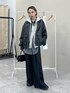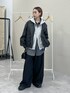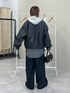 レザーブルゾン▶︎WEB限定Sサイズ!ワイドシルエットのパンツと合わせるとバランスの良い丈感◎低身長さんや、スタイルアップをしたい人は、丈短いサイズがおすすめ! インナーの裾を出してもおしゃれ見えするよ! あと見た目よりも軽い! パンツ▶︎ジャケットと同じ素材のパンツ!サイドがチェックになってるのがポイント!154cmでSサイズ着用!ゆったりめでスニーカーと合わせると丈ぴったり!