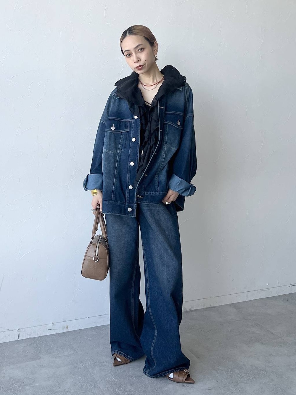 デニムセットアップにレースを入れるのが今年っぽい◎ デニムジャケット▶︎カットソー素材でまじで伸びるし、重くない!スウェット感覚で着られるから肩凝り0! フリーサイズなので低身長さんは、袖をまくるとバランス取りやすくておすすめ◎ デニムパンツ▶︎ 154cmでMサイズ着用(サンプルの関係でMサイズ)低身長さんはXSサイズがおすすめ! ずるっと穿きたければSがおすすめ! 脚が長く見えるストレートシルエットで、ハイウエストでお尻周りとお腹周りに安心感あります。