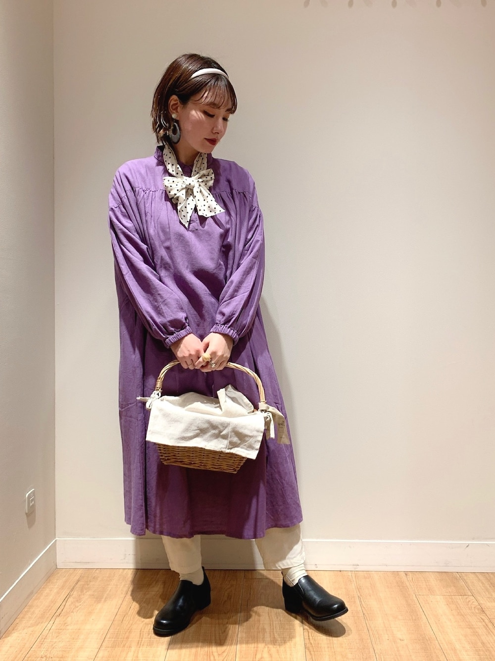 紫のワンピースはパッと目を引き、顔まわりを華やかにしてくれます💐 Instagram👉hahaha_2525_ こちらのTOPのURLからお洋服購入できます😋