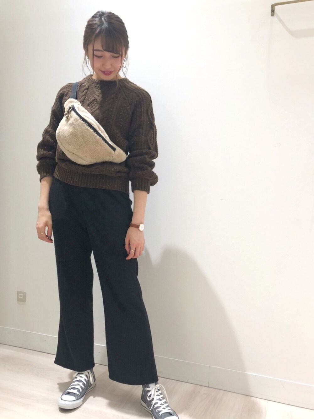 ご覧いただきありがとうございます❤︎ 起毛パンツは今から冬まで使って頂けて、 とっても履きやすい楽チンパンツです👖 はまじコラボのざっくりケーブルニットを合わせて カジュアルになりすぎないようにまとめてみました🙆♀️