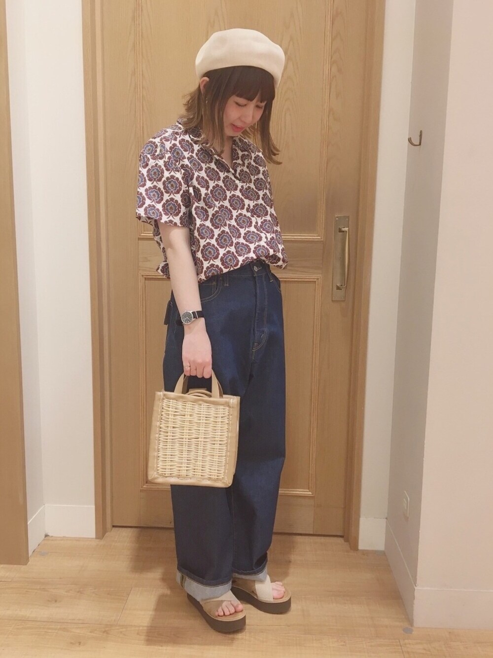 リバティの開襟シャツは 総柄なのでシンプルにデニムと合わせても オシャレにキマります♩ 胸元が空きすぎるのが苦手な方は 襟元にボタンがあるので きっちり閉めてもいただけます❤︎
