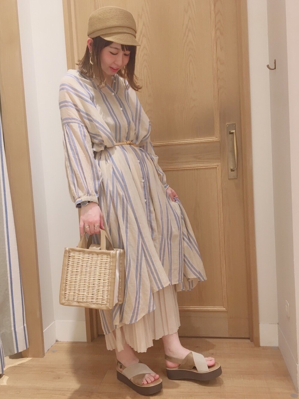 大人気のストライプワンピース着まわし❤︎ イエロー×ライトブルーは ふんわりしたカラーで優しい印象に。 プリーツスカートとウエストマークで大人っぽく。