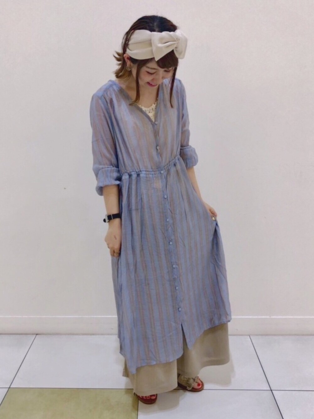 優しい色味のストライプワンピは 羽織としても大活躍間違いなし。 透け感が夏らしい♩ 普段はカジュアルだけど ちょっとガーリーにしたい日におすすめです🌷🌷