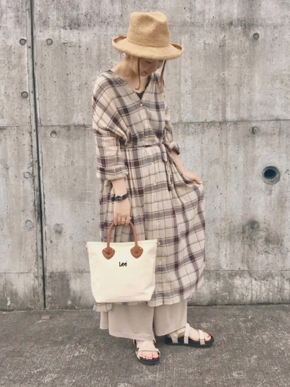 チェックワンピースは 長袖ですがシャーリング生地なので 涼しくて着やすい♩ ノースリーブの上の羽織としても 使っていただけます👗💕 スカーチョはなんと接触冷感! ひんやりした肌触りで今の時期嬉しいアイテムです🎐