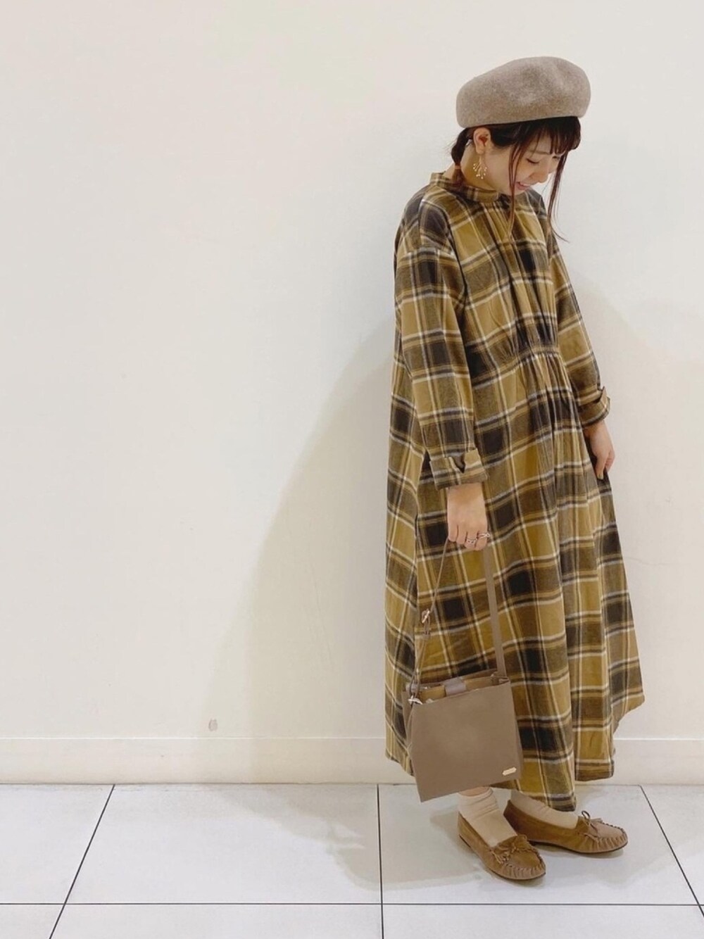 チェックのワンピースは 1枚で着れる丈感🥺✨✨ キモウなので冬も着ていただけます☃️ スタンドカラーなので 首が開きすぎないのが嬉しいです ♩