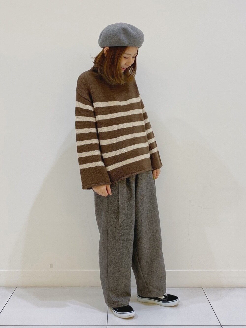 太いボーダーがポイントのニット♡ 袖口が広めでゆったりシルエットが かわいいです 🧚♀️💕 パンツもニットもゆったりサイズなので 着やすいですよ ✨
