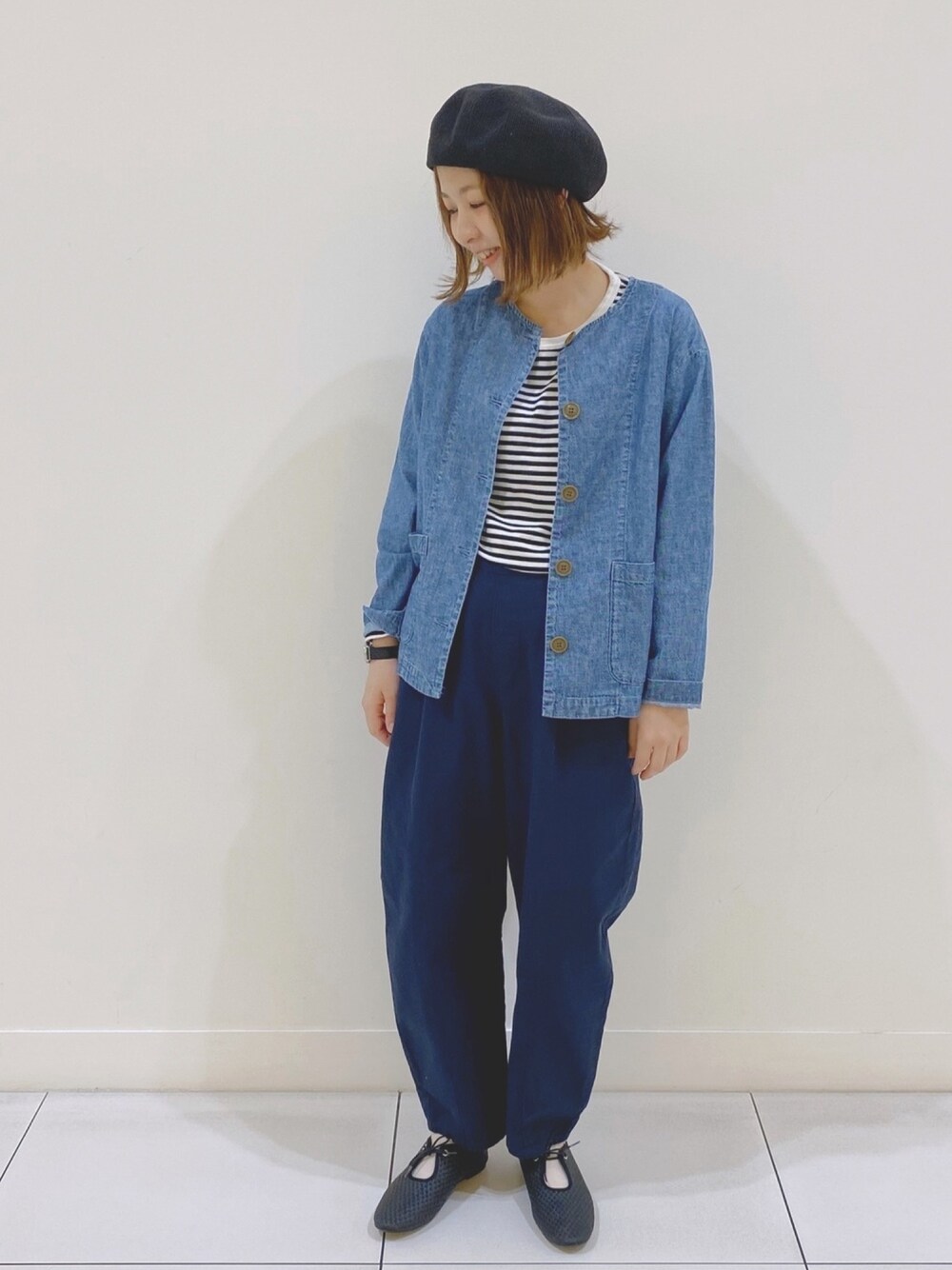 ショート丈のジャケットは ボリュームのあるボトムとの相性が◎ かっちりしすぎないや笑素材なので シャツ代わりにも着ていただけます ♩