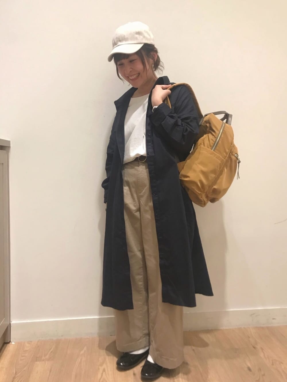 こんにちは☀︎ 今回、チノパンを使ったコーディネートです! チノパンはストレッチが効いていて、シルエットがとても綺麗で色違いで欲しくなるアイテムです♪ ビックシルエットのシャツワンピ+トレンドのバレエシューズでキレイめカジュアルにまとめました◎ 大人気のLegato Largo(レガート ラルゴ)とコラボしたリュックサックは、とても軽く荷物も沢山入り、10ポケットなので使いやすさ抜群で私も愛用しています☆ 春の新作たくさん入荷してます⌄̈⃝ 是非、店頭やWebでチェックして見てくださいね♪