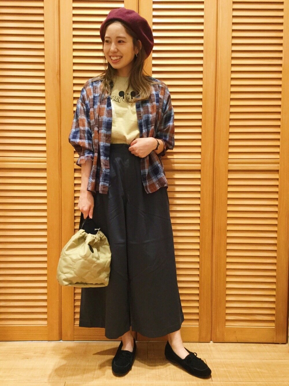 皆さん、こんにちは^ ^ いつもいいね お気に入りありがとうございます✨ 今回は大人気のミッキーTに袖がフリルになっているチェックシャツ、ワイドパンツを合わせたカジュアルなスタイリングです!色みを秋らしくトーンダウンさせるとより大人っぽく着れます♪