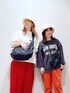 運動会におすすめのカラーコーデ♡ トレンドカラーの赤を身につけてればお子さまもすぐ気づいてくれるはず(^^) 右kayo着用 【トップス】 低身長の私が着ると9分丈でした! 軽くて端境期にちょうどいいスウェットトップスです♪ パンツは裾を1つ折り返して履いています(^^) やわらかい生地でお尻周りもゆとりがあって履きやすいです。 左mayuさん164cm 右kayo 148cm