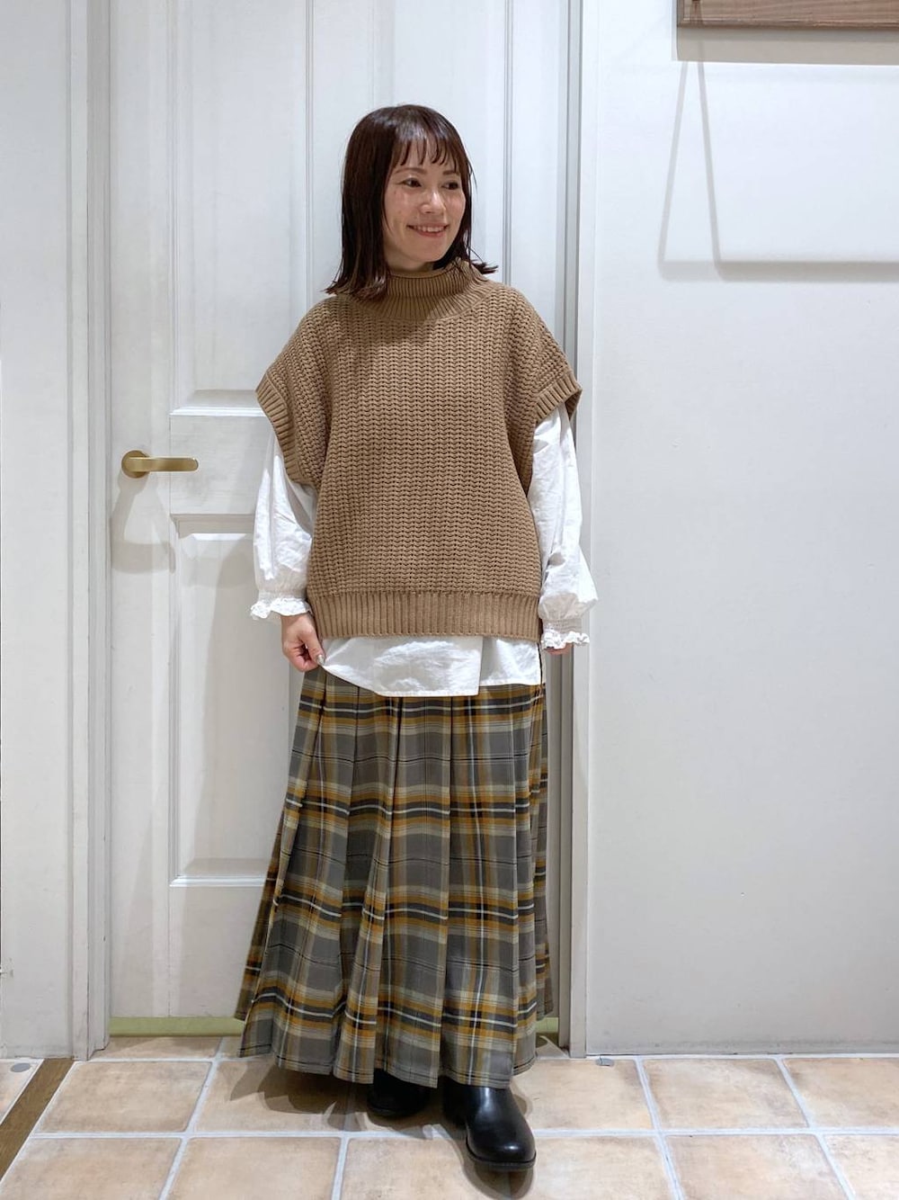 人気のロールネックベスト♡ 二の腕まで隠れる袖丈で肩周りはスッキリ♡ ロンTやブラウスと重ね着したりワンピースの上に重ねたりしても◎ 【スカート】 大きめのプリーツが可愛い♡ 今季トレンドのチェック柄でニットやロンTと合わせるだけでオシャレ見えする1枚です♪ 低身長さんはぎりぎりな丈なのでブーツや厚底スニーカーなどと合わせると安心です(^^) Instagramはこちらこら→