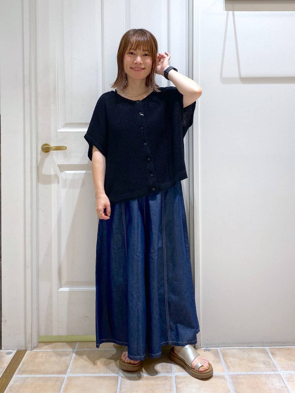 ⭐各アイテムのおすすめポイント  ̄ ̄ ̄ ̄ ̄ ̄ ̄ ̄ ̄ ̄ ̄ ̄ ̄ ̄ ̄ ̄ ̄ 【トップス】 前後ろ2wayで着れるプルオーバーです♪ 意外と二の腕までしっかり隠せて、ざっくり編みの生地なので涼しく着れますよ♡ 【ボトムス】 デニム生地のスカーチョです♪ゆったりとしたデザイン、裾も広がってるので下からの通気性も良く、縦に切り返しのステッチが入ってるので脚長効果も抜群!! Instagramはこちらから☞