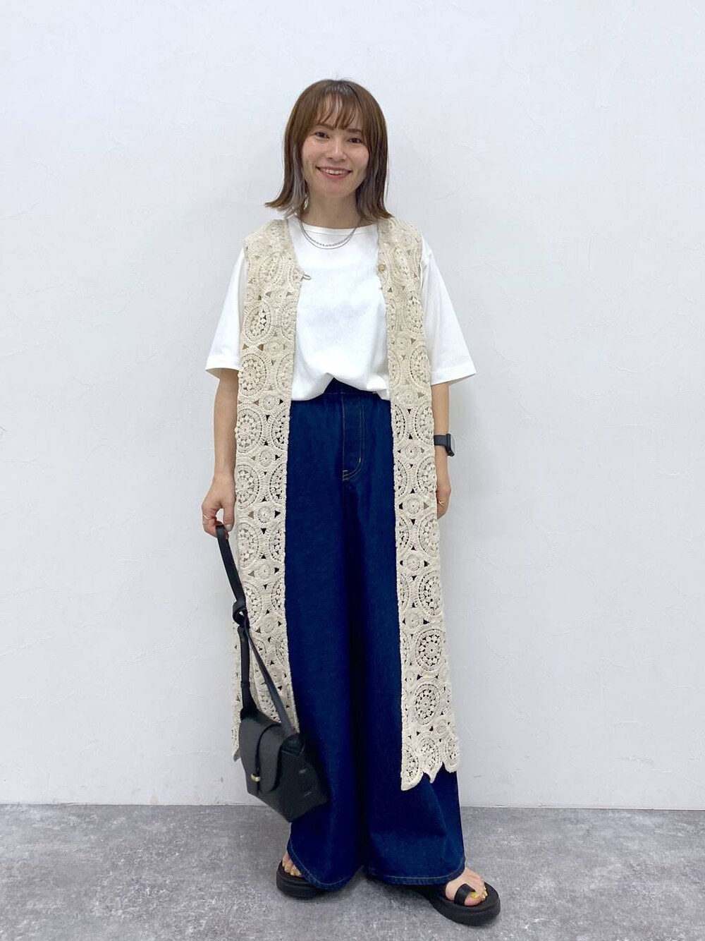my fit clipのレースジレ♡ ワンピースに重ねたりTシャツに重ねるだけで一気にオシャレ感アップ♡ デニムはMサイズだと長めなのでロールアップかウエストを折り返すと履けました♪ 着用アイテムはプチフリーサイズを履いています(^^) Instagramはこちらから☞