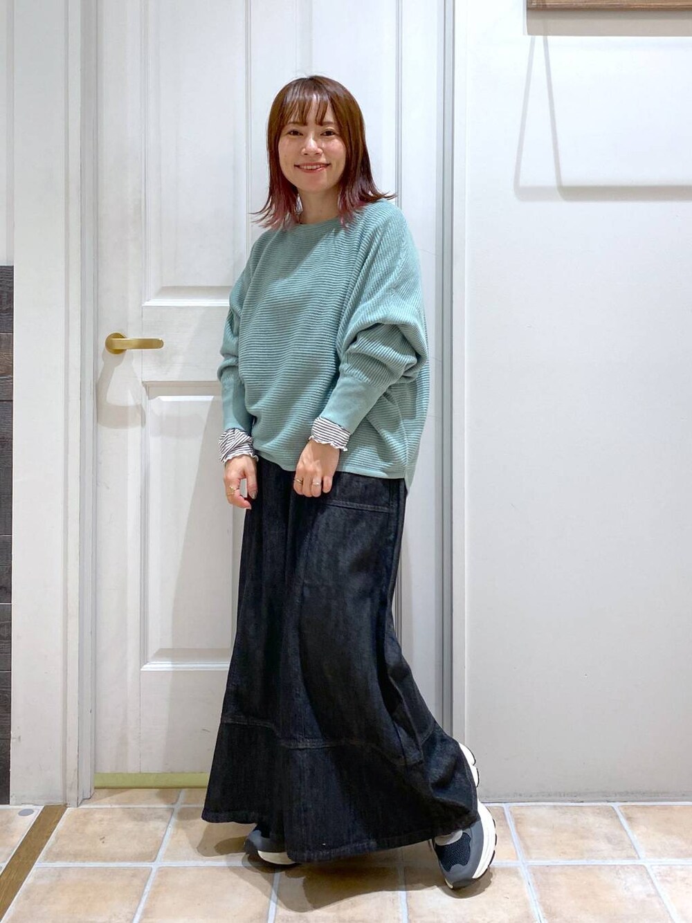 3シーズンニットを使った春まで使えるコーデ♡ デニムスカーチョはステッチが縦にも入ってるので足を長く見せてくれますよ(^^) Instagramはこちらから→