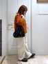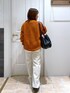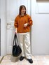⭐各アイテムのおすすめポイント  ̄ ̄ ̄ ̄ ̄ ̄ ̄ ̄ ̄ ̄ ̄ ̄ ̄ ̄ ̄ ̄ ̄ 【トップス】 ワンポイントになるオレンジカラーのニット♡ ロンTと重ねてチラ見せすればオシャレ感アップ! 【ボトムス】 ストレッチが効いていてやわらかーい肌触りです✨ 広がりすぎないのでちょい長めのニットやスウェットなんかで合わせても◎ Instagramはこちらから↓