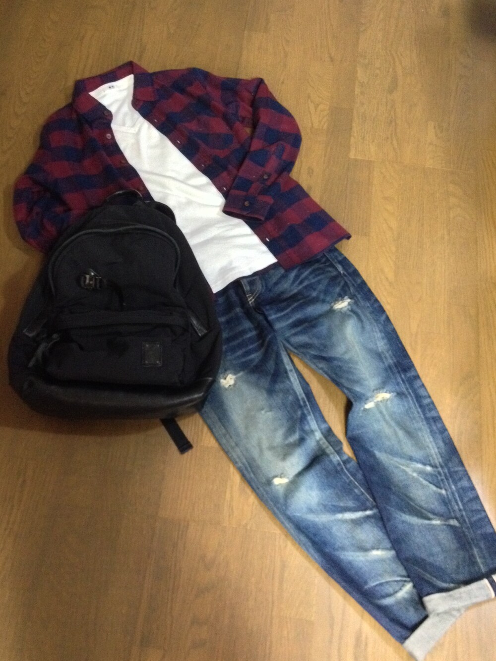 glambのチェックシャツ&デニム アメカジテイストです! お気に入りのMSPCの20thアニバーサリーリュックは欠かせないかなぁーと もうそろそろ暑くなるから、着ていかなければー
