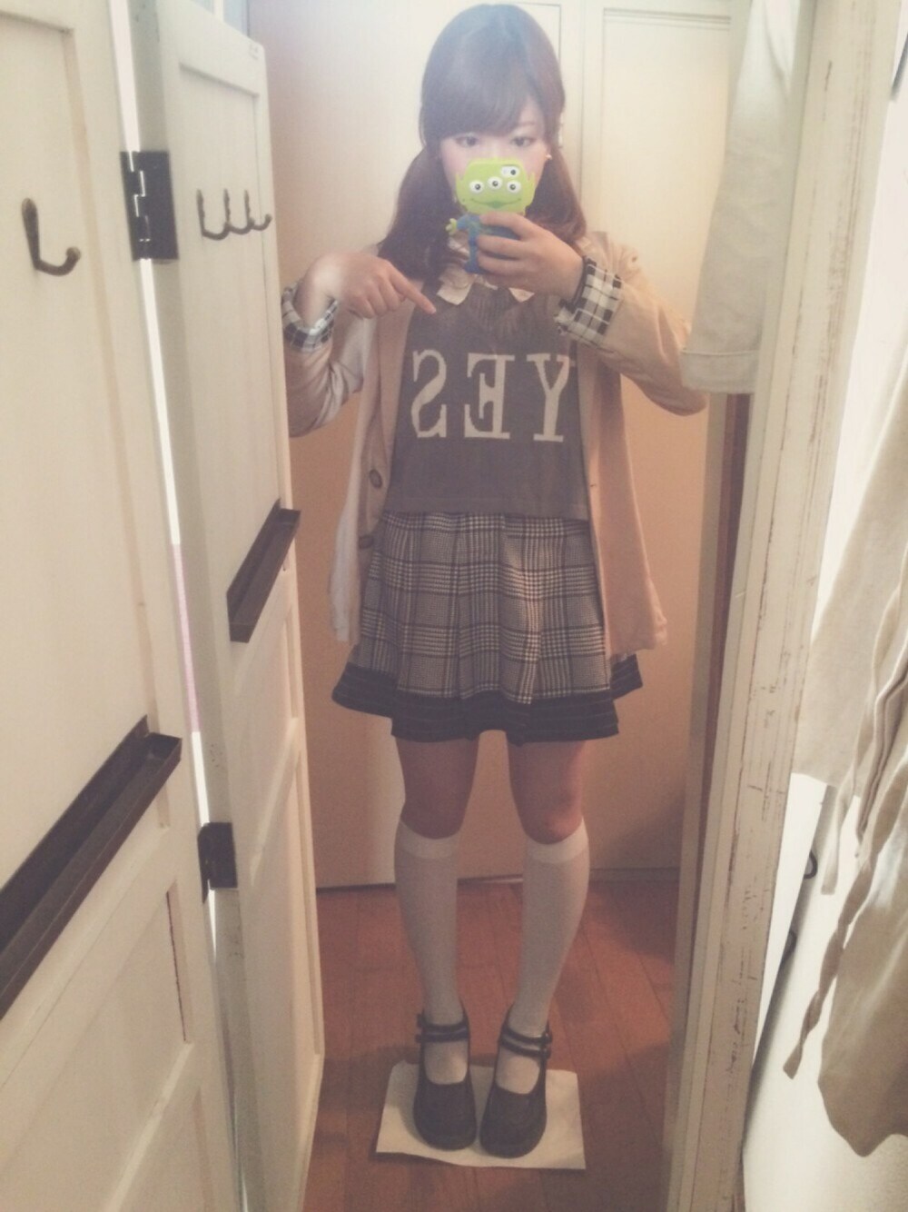 「YES」 このベストとても好きなんです インパクトが凄くて思わず買ってしまったのです>< しかも600円だった…(꒪⌓꒪) ベストということで ちょっぴりスクールガール風。 珍しく白×柄⊂((・x・))⊃ 柄は同系色にまとめました♪ ジャケットはFree's Martで ¥9000→¥3000! 今日はこれから30日のライブに向けて 稽古に行ってきます〜ヽ(`・ω・´)ノ がんばる!