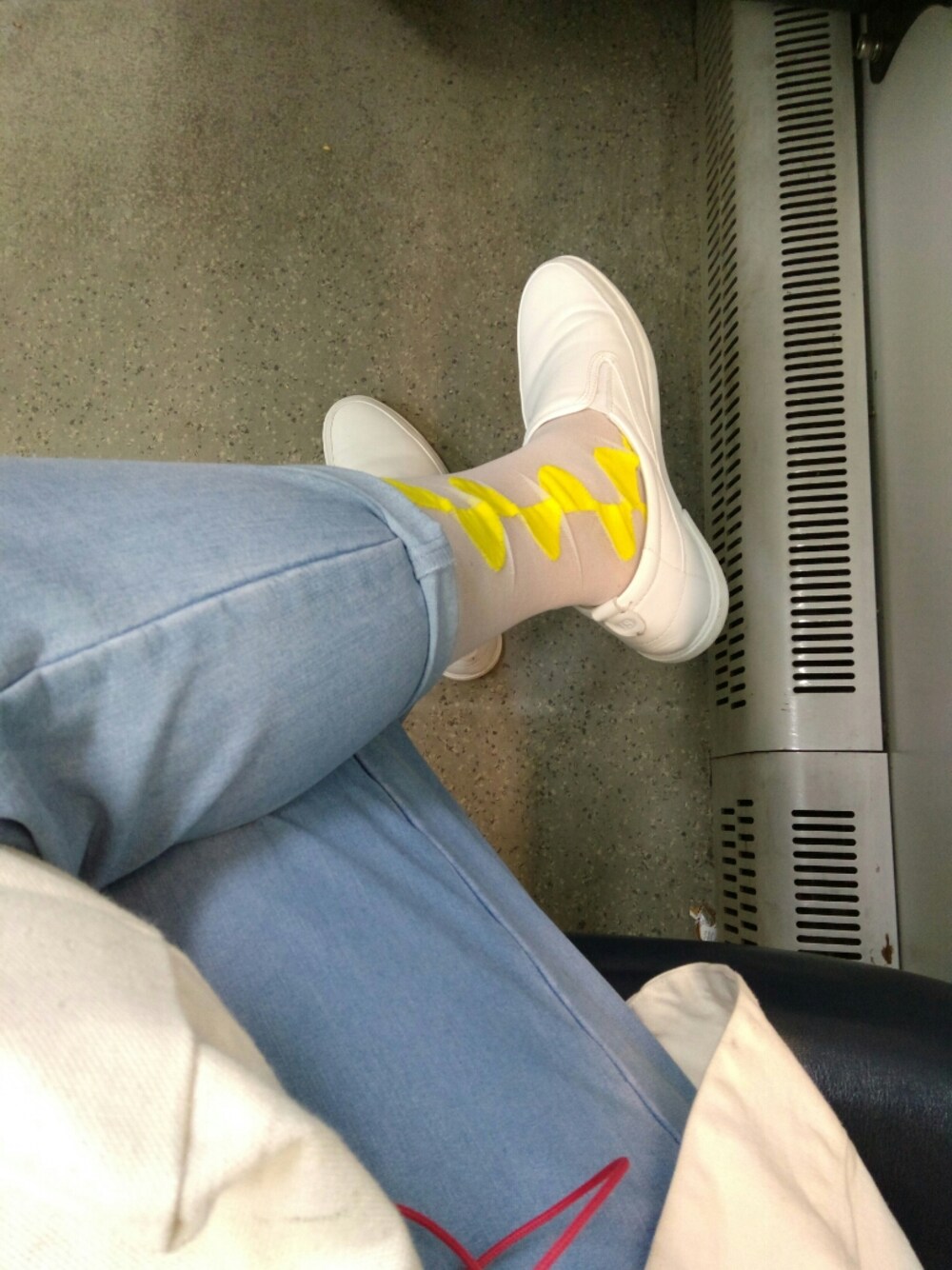 緩めのジーンズ+明るいポイントソックスで春っぽい出勤日 ちなみに、この度飲食店を辞め、オシャレできる美容室にはたらきはじめました。