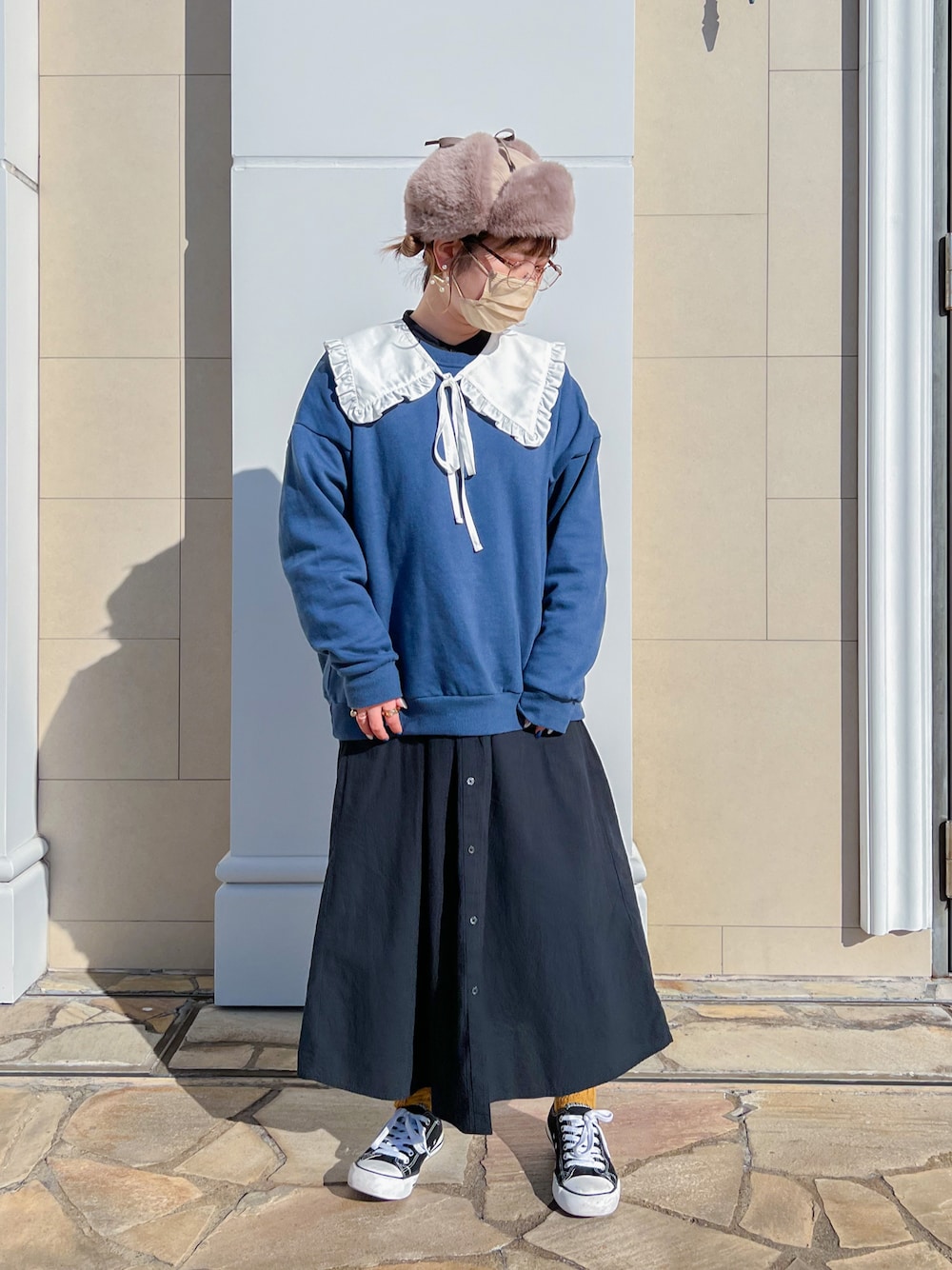こんにちは!☀️ いいね、お気に入りありがとうございます🥰 朝晩はまだまだ冷え込むので、 防寒アイテムは欠かせません。。。 ワンピース×付け襟で、 甘々なコーディネートになりましたが、 スウェットやスニーカーを合わせて カジュアルダウン。 カオリノモリのフライト帽は アウトドア過ぎなくて、 ガーリーなお洋服にも似合うんですよ😋❤️