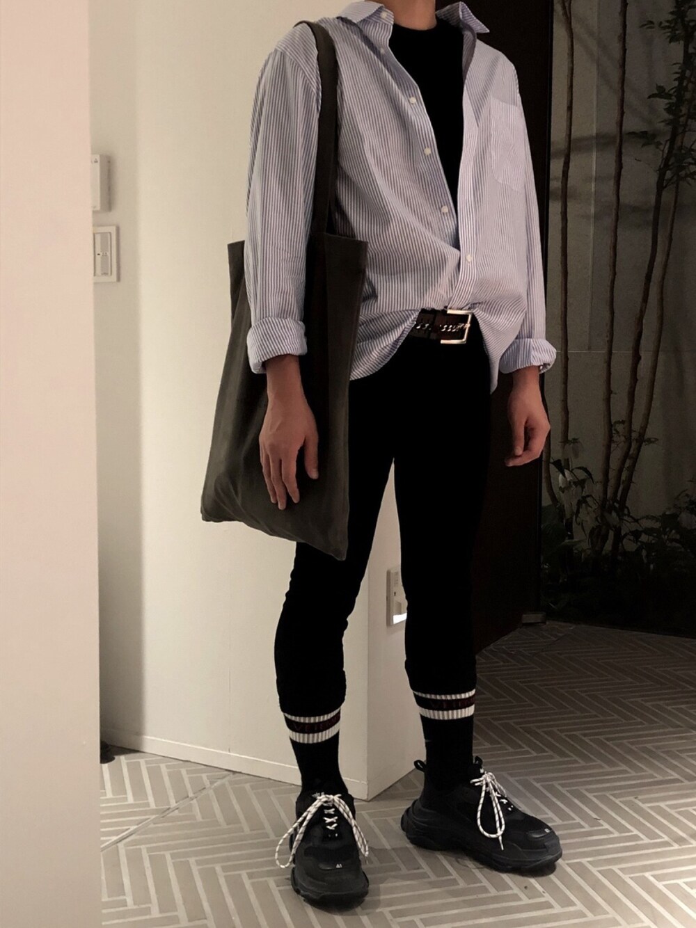 圧倒的帽子似合わないマンのシャツ/ブラウス「ファインクロスストライプシャツ(ボタンダウン・長袖)」を使ったコーディネート