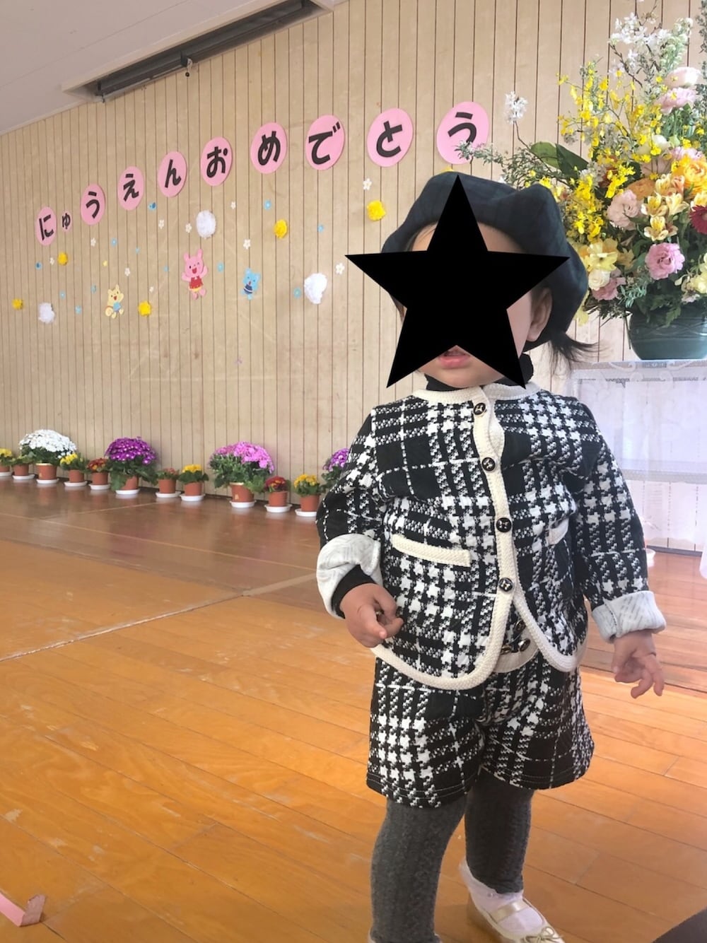 こんにちは! いつもいいね、ありがとうございます❤️ こないだの入園式コーデ💕 ネットで探したセットアップ✌️ 周りの女の子はヒラヒラふわふわの可愛いスカートを履いておりました🤤❤️ すーぴー、スカートがよかったかな? ごめん😂(笑) 保育園、楽しんでねー!!!