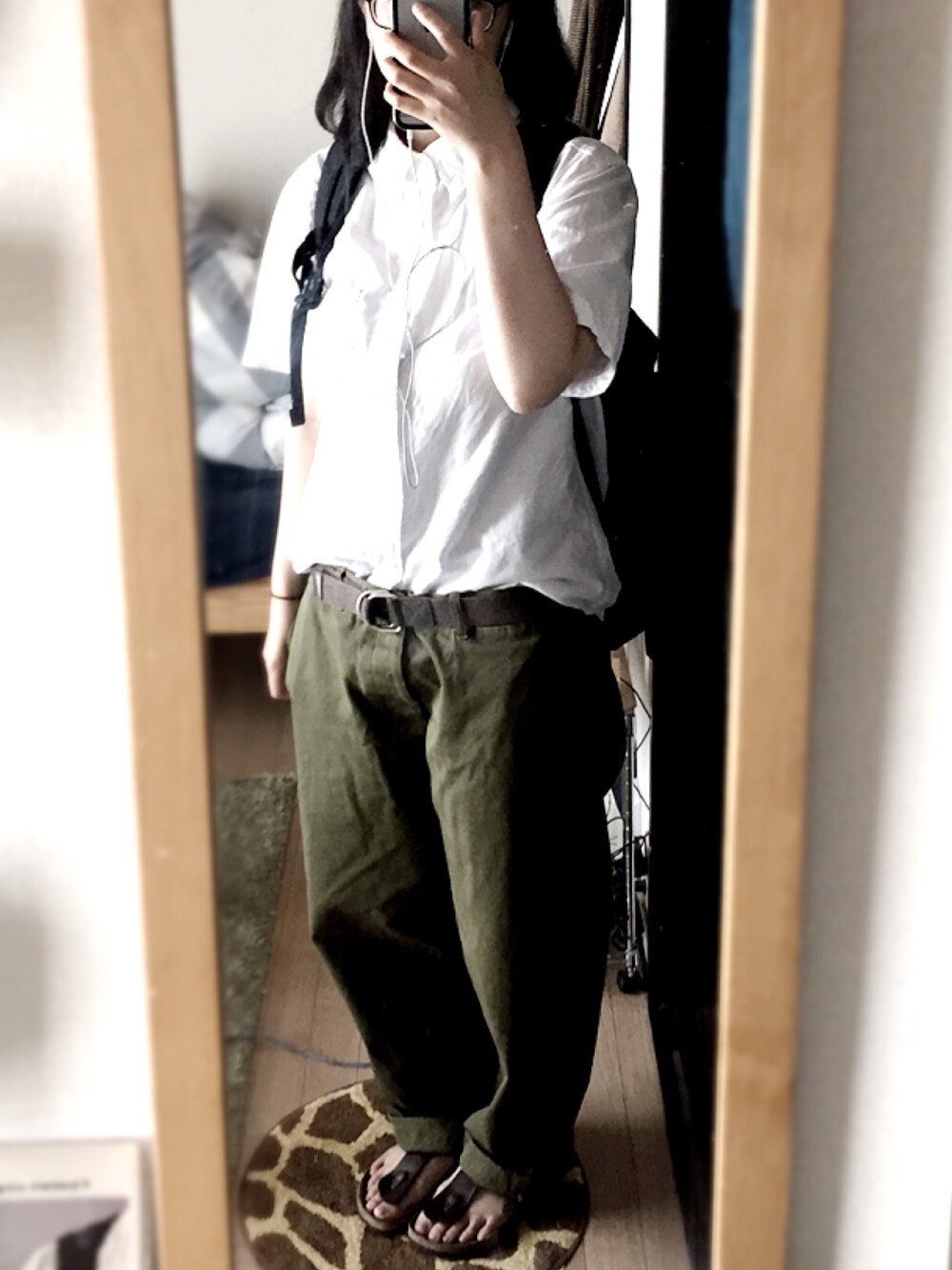 2017.06.20 男子学生スタイル。 白シャツ×だぼパンツ