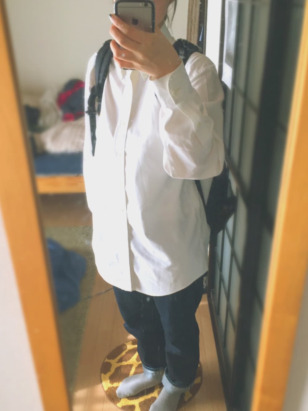 2017.01.29 今日もだぼだぼスタイル。 この前、古着屋で手に入れたオックスフォードシャツ、メンズ物で。