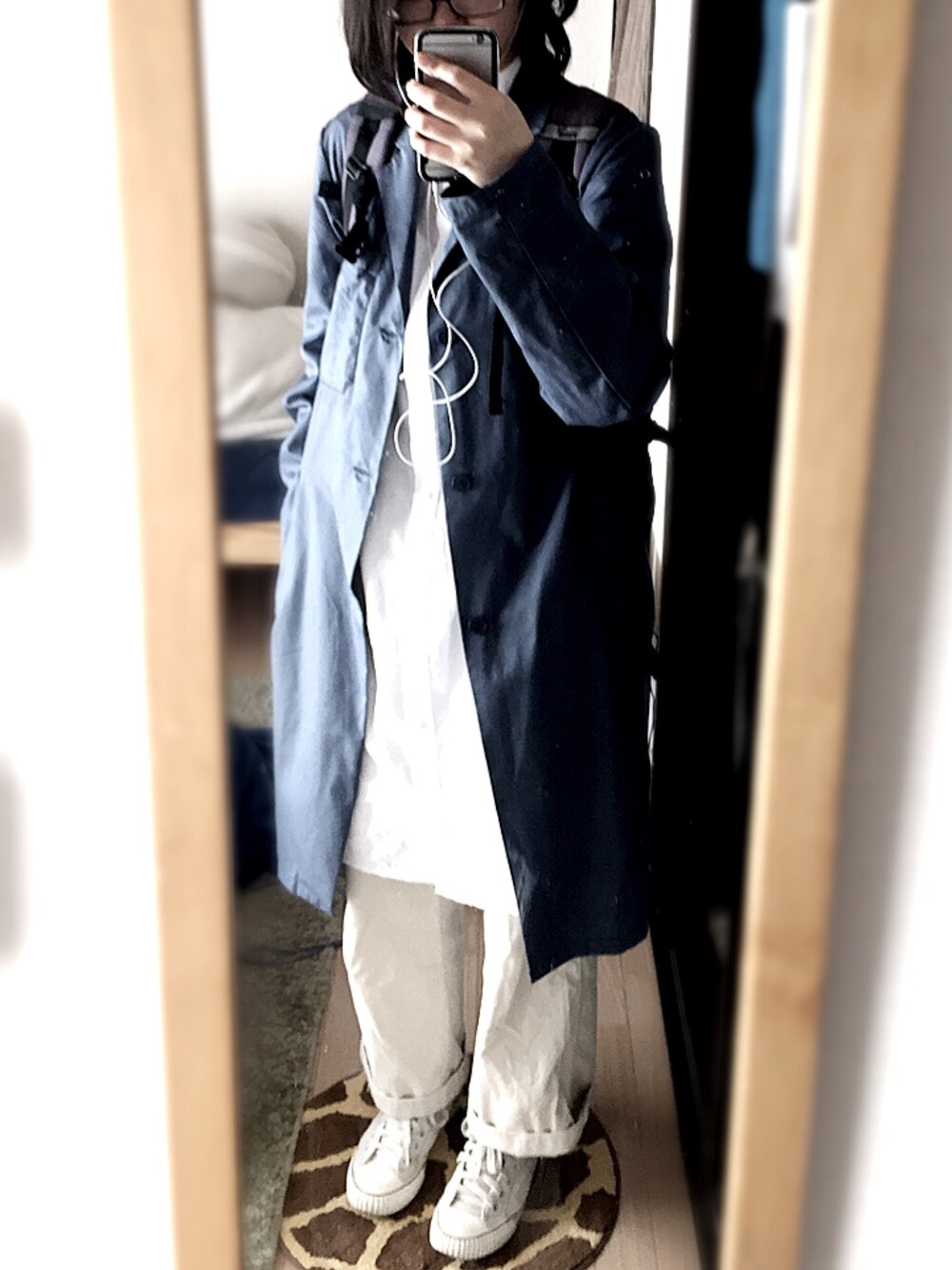 2017.04.07 白×青コーデ。 鳥の鳴き声で春がきてるのを感じる朝。
