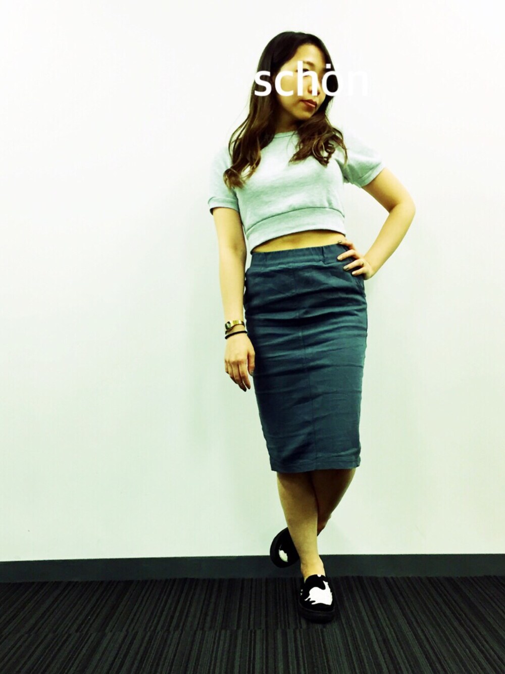 担当の藤田です! ズバリ!今日のテーマは 【グレーのグラデコーデ】 です! トップスから足元にかけて、徐々に濃くなるように意識した、チラ見せスタイル! グレーは大人しい印象になりがちですが、チラ見せスタイルにすることで、そんなイメージは払拭です!