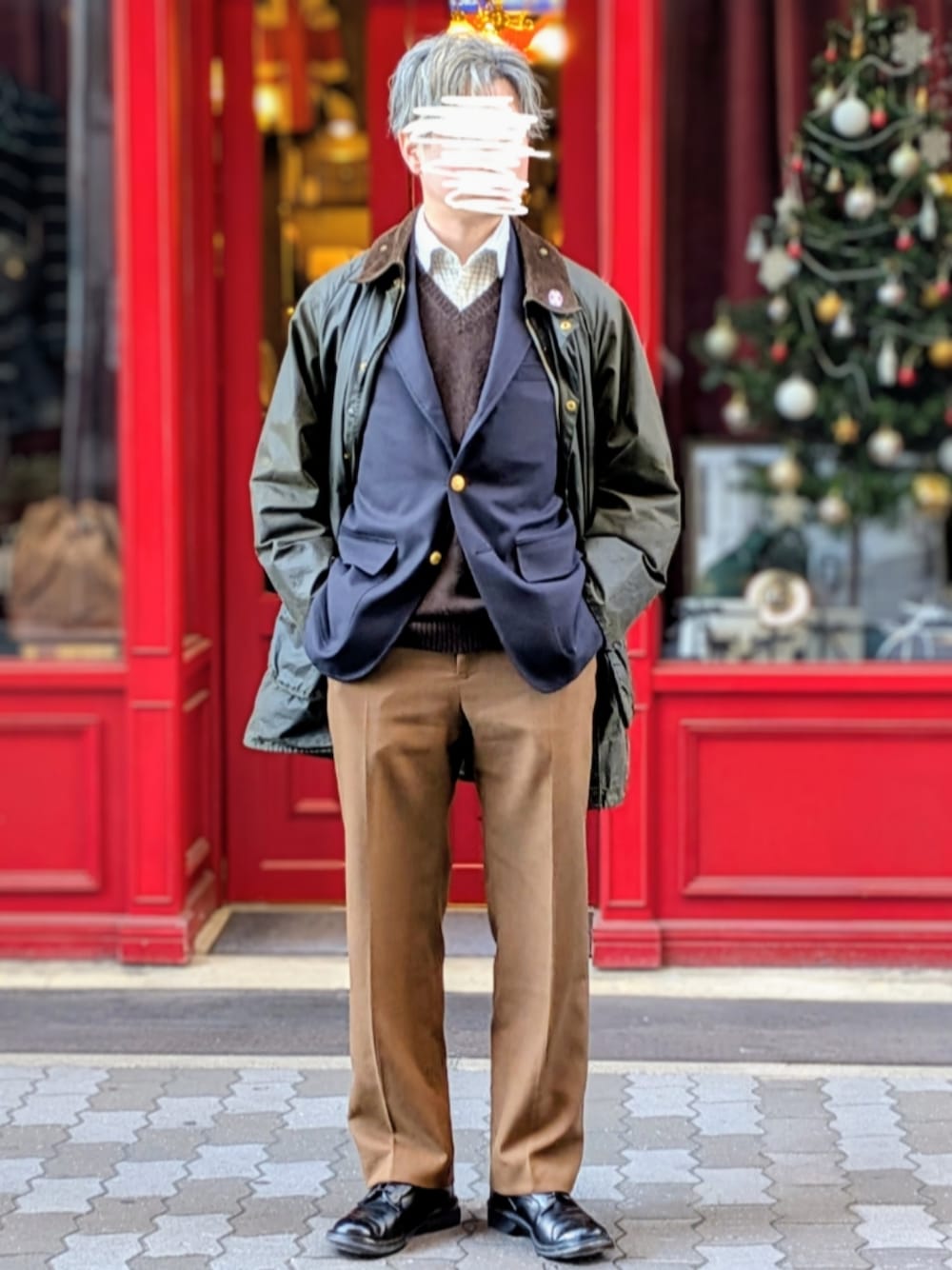 ブリティッシュアメリカンコーデ outer: Barbour 🇬🇧 brazer: Brooksbrothers 🇺🇲 best: Brooksbrothers 🇺🇲 shirt: Cordings 🇬🇧 pants: British army 🇬🇧 shoes: Tricker's 🇬🇧