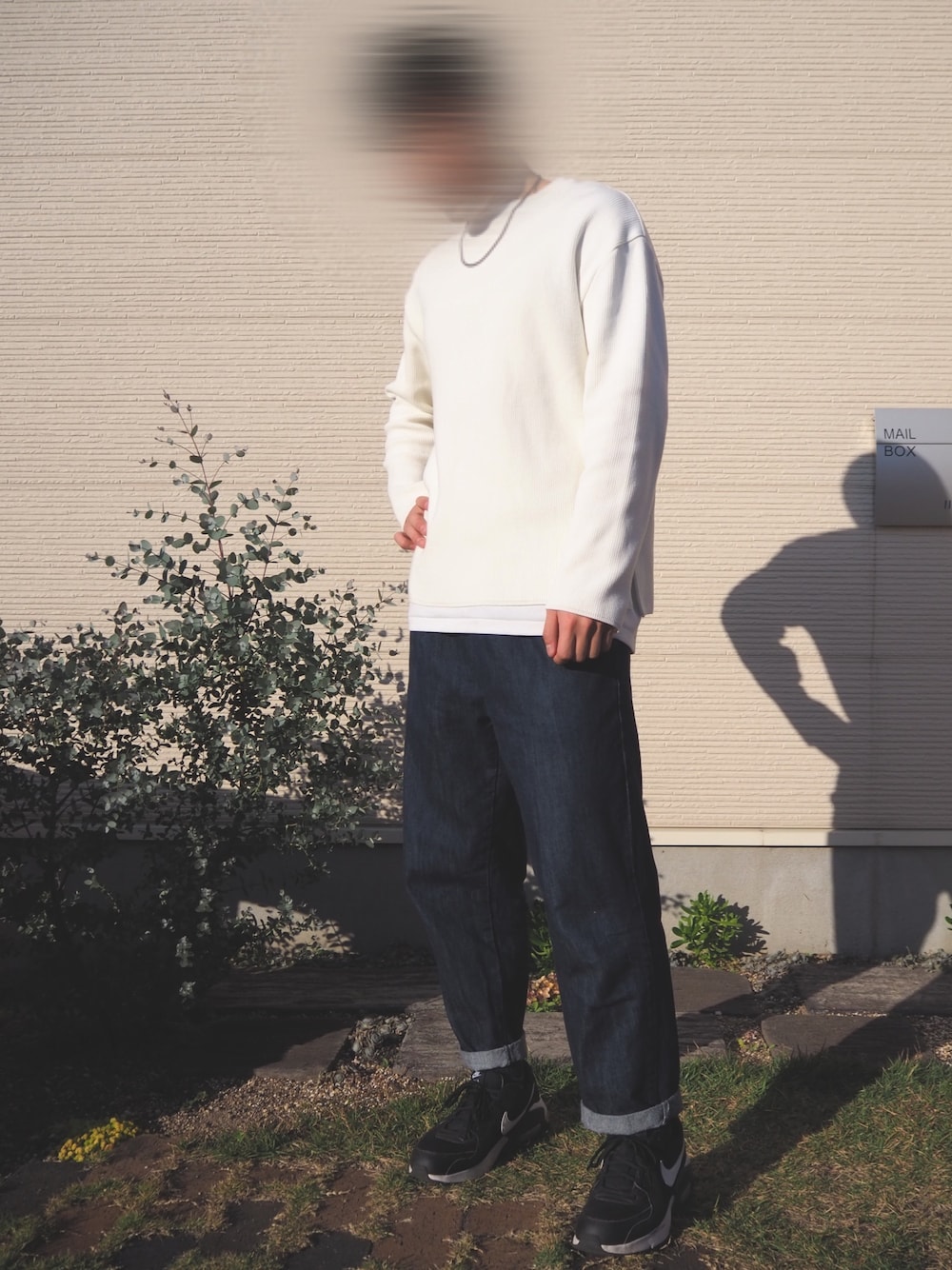 LIDNMの白ニットを用いたシンプルながら超お気に入りのコーデ。 パンツはなんだかんだで一番着用率が高いGUのシェフパンツ。 シンプルなので、ネックレスなどのアクセサリーを付けるとアクセントになります。 誰にでも絶対に似合って、迷いどころのないコーデで超おすすめです(^^)