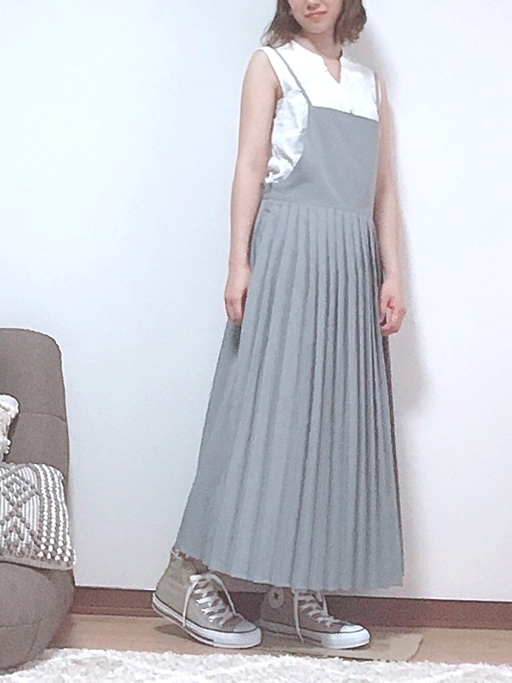 さちのワンピース「プリーツキャミワンピース」を使ったコーディネート