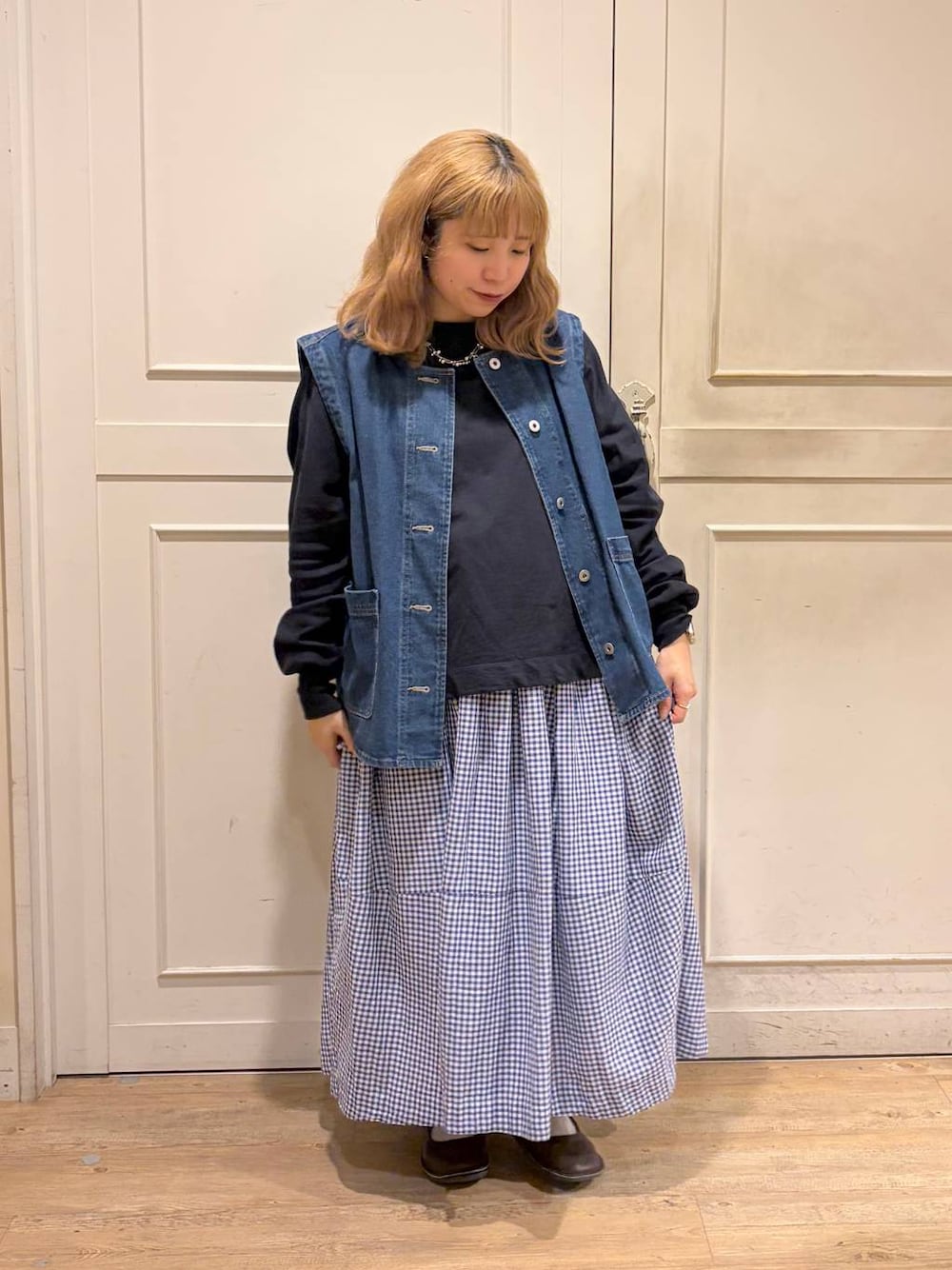ゆるっとナチュラルコーデ♡ ブルーギンガムチェックとデニム合わせが春らしくてカワイイ♡ウエストゴムで楽チンで丈も長過ぎないので低身長さんでも安心です😮💨♡ナチュラルコーデがスキな方は絶対スキなアイテムです!
