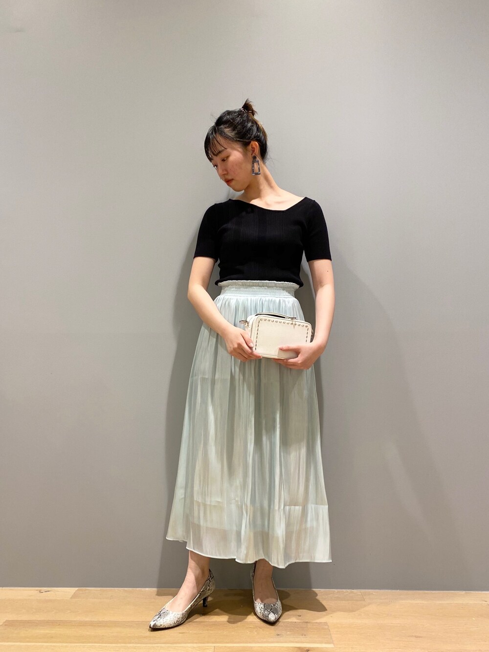ご覧頂きありがとうございます アシンメトリーデザインのニットとサテン素材のスカートできれいめコーディネート♡ instagram sa_cana15