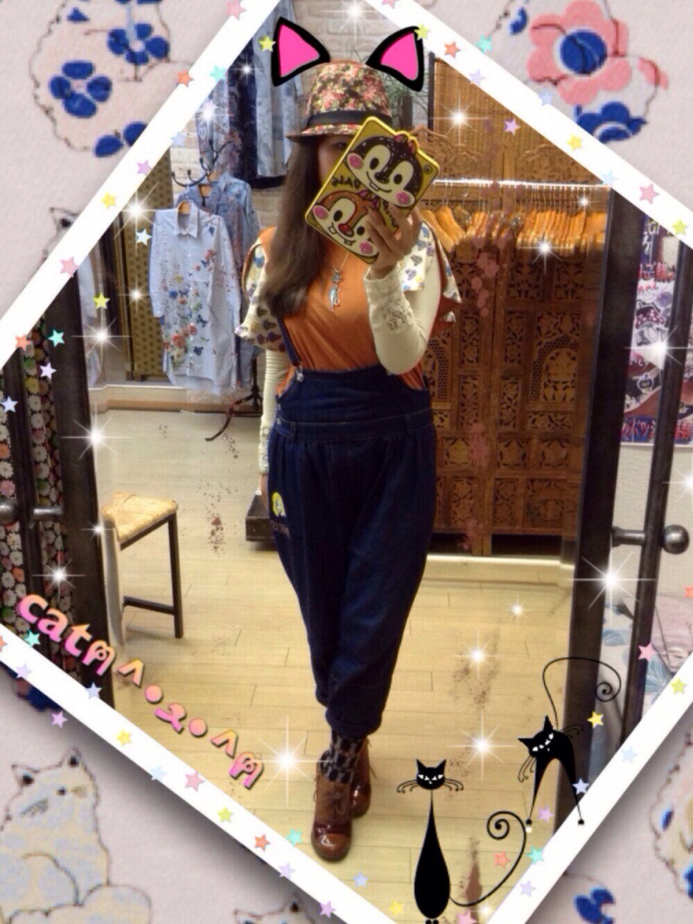 ♡とある日の加藤コーデ♡ お久しぶりの更新でごめんなさい( ´。pωq。) 季節はすっかり秋です🌰🍂🍁 オレンジと茶色コーデ ハットも花柄茶色で統一を✨ トップスはよーく見たらネコちゃんฅ^•ﻌ•^ฅなんです サロペットでカジュアルに🎶 この時期は靴下と靴でおしゃれが楽しめますね♡♡ 加藤は秋が大好きです(≧∀≦) scolar_nara_goofy Instagramはじめました✨ そちらもチェック願います😍 新作とちょっと昔のスカラーを合わせる新旧コーデにハマり中✨ 何年経っても新鮮で飽きのこないのがスカラーですよね٩(๑>∀<๑)۶ 同じアイテムでいろんな着こなしをチェックしてね♡♡ お洋服は売り切れ商品もあり!! スカラー、イズスカラー商品絶賛発売中です(*^^*)