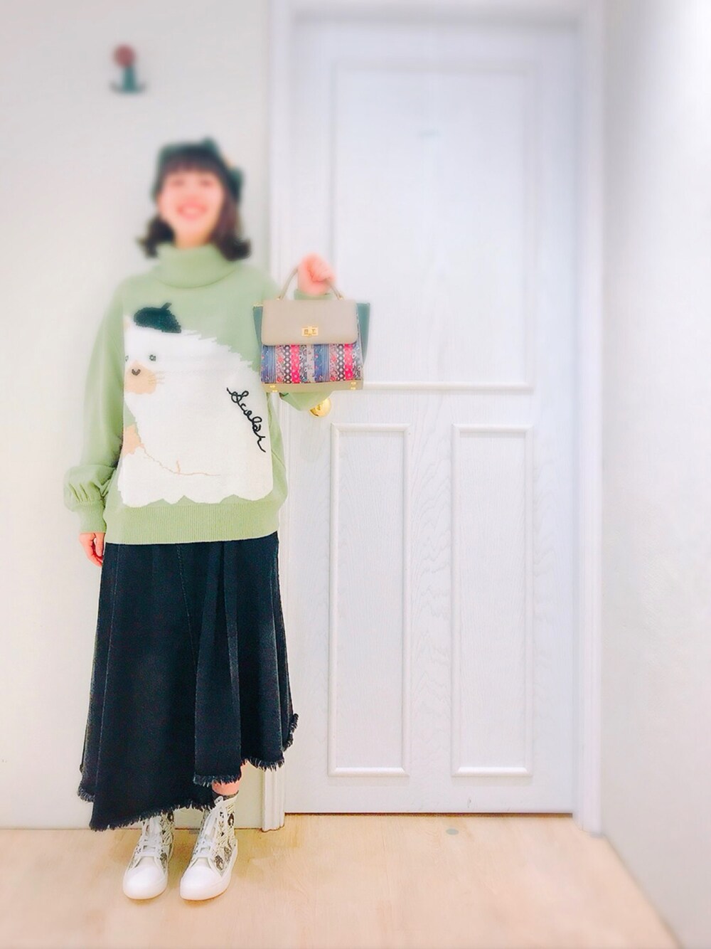 こんにちは(*´꒳`*)! 昨日の晩御飯はとんかつ🐷しゃんです🐟 買う買う詐欺をしていたリュックをついに購入しました!!! 早速次の旅行に連れていきます👜 この調子で憧れの小さいカバンで生活できる人を目指していきます👀 本日はそんな私のこちらのコーデをご紹介いたします◎ ベレー帽を被ったネコちゃんのニットを着てベレー帽を被ってみました🎩 デニムスカートはアシンメトリーな裾が個性的ですが とっても合わせやすい1枚です🤖