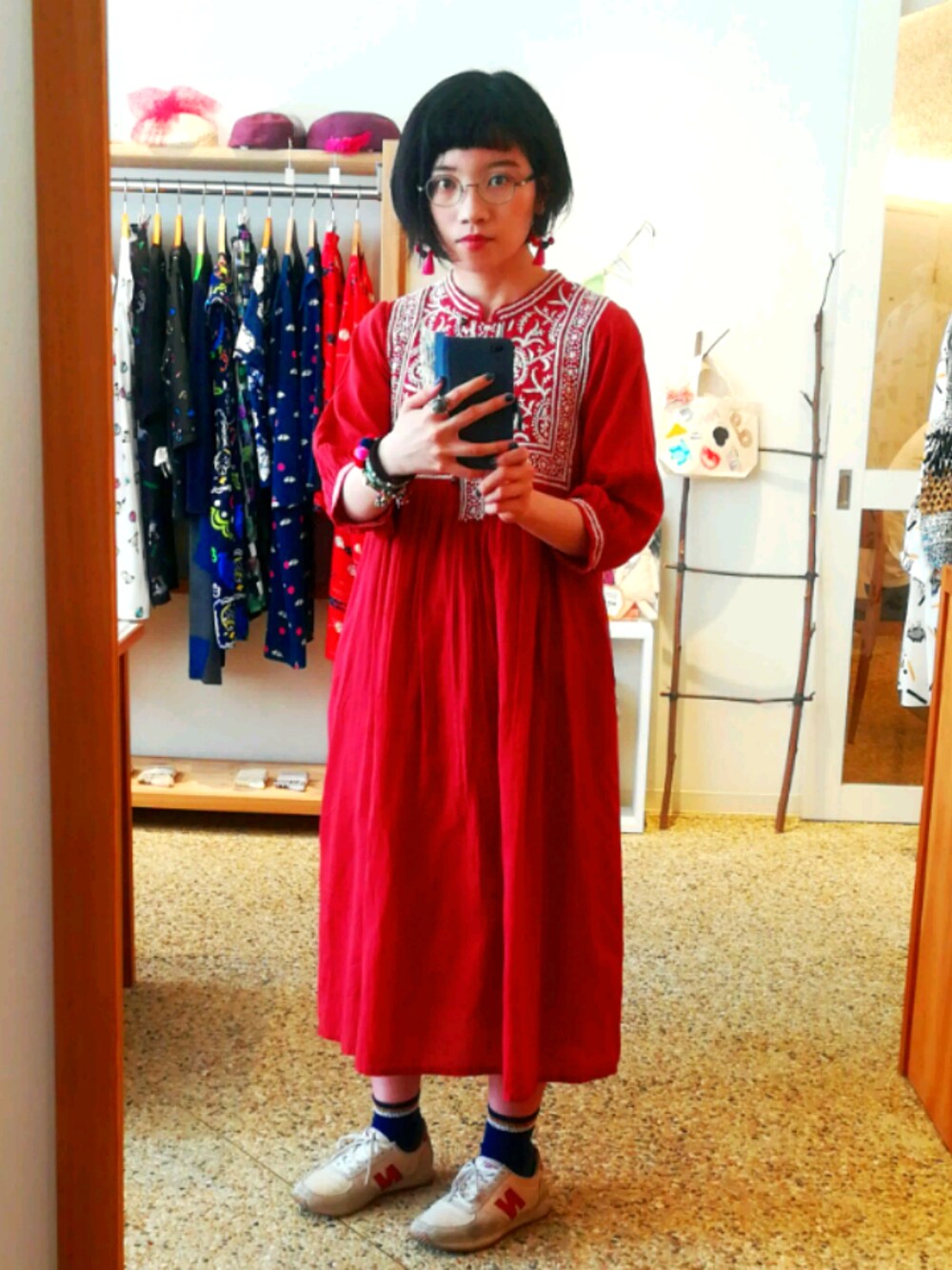 アジアンテイスト大好きなので夏はいっぱい着たい マライカの刺繍ワンピース、首元も民族衣装みたいでお気に入り