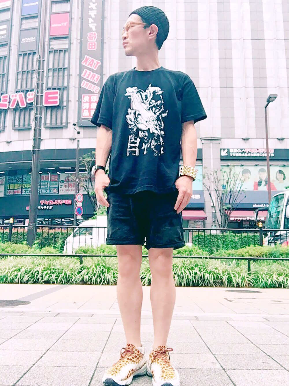 バンドTシャツ着たかったけど持っていなかったので、大好きなstillichimiyaのTシャツでブラックに統一! 笑福亭笑瓶さんをリスペクトしたメガネを着用しています。